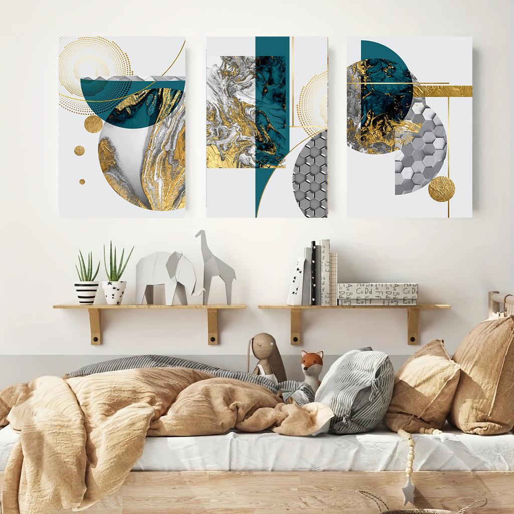 Набор картин на холсте с абстрактным рисунком «Золотой синий мрамор» — настенный декор для гостиной, спальни, офиса — современные художественные принты для использования в помещении
