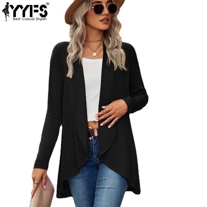 YYFS Женские модные повседневные однотонные куртки и пальто с длинными рукавами с принтом на осень и зиму