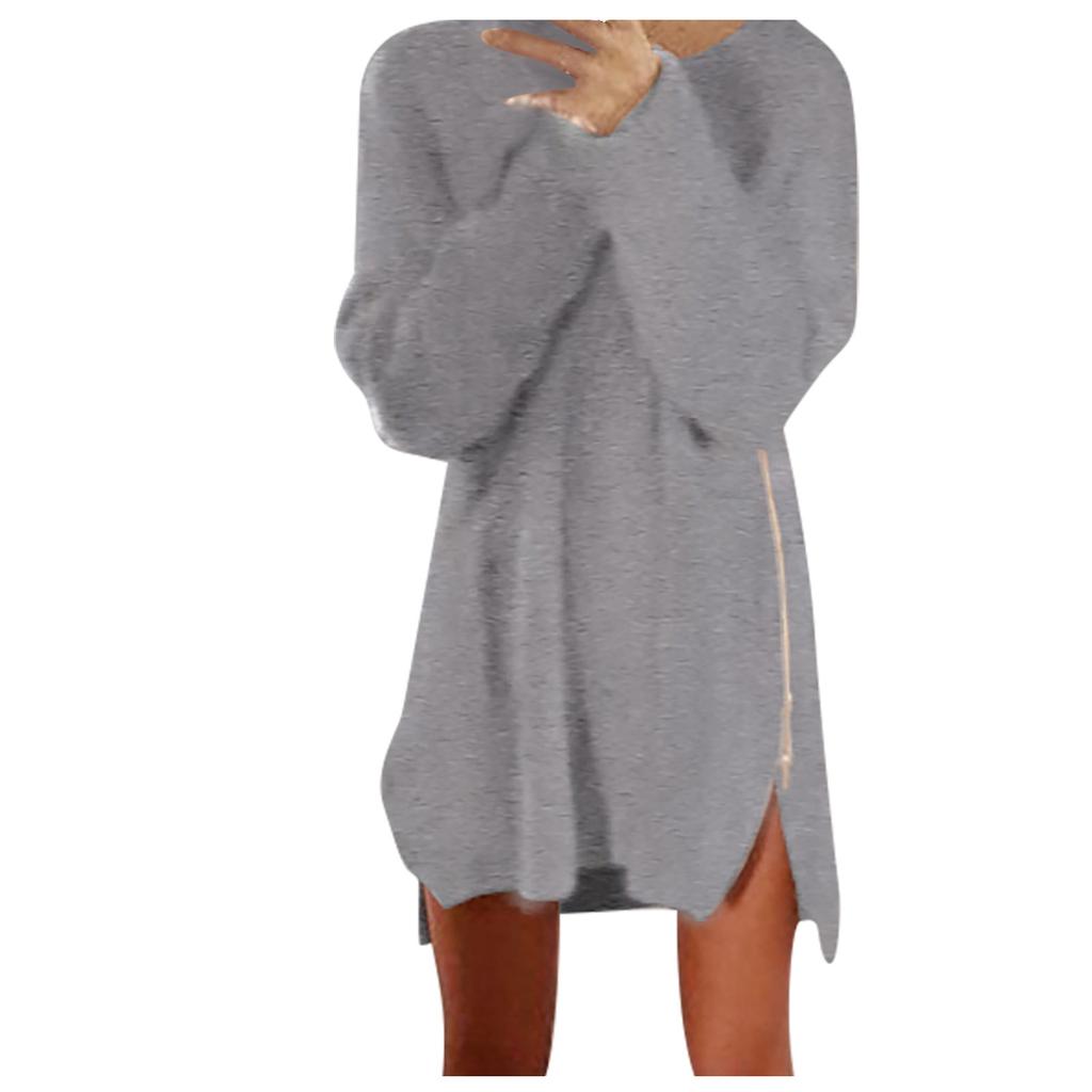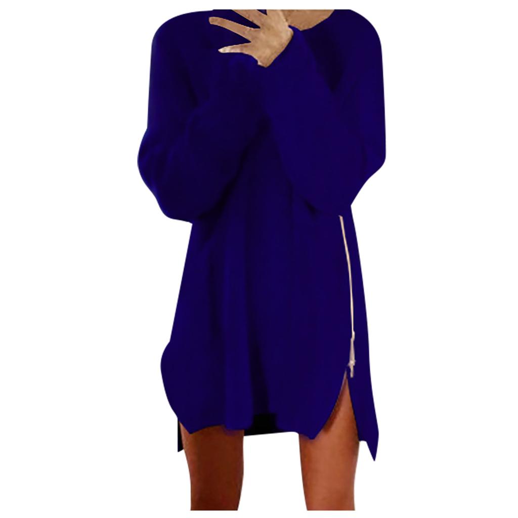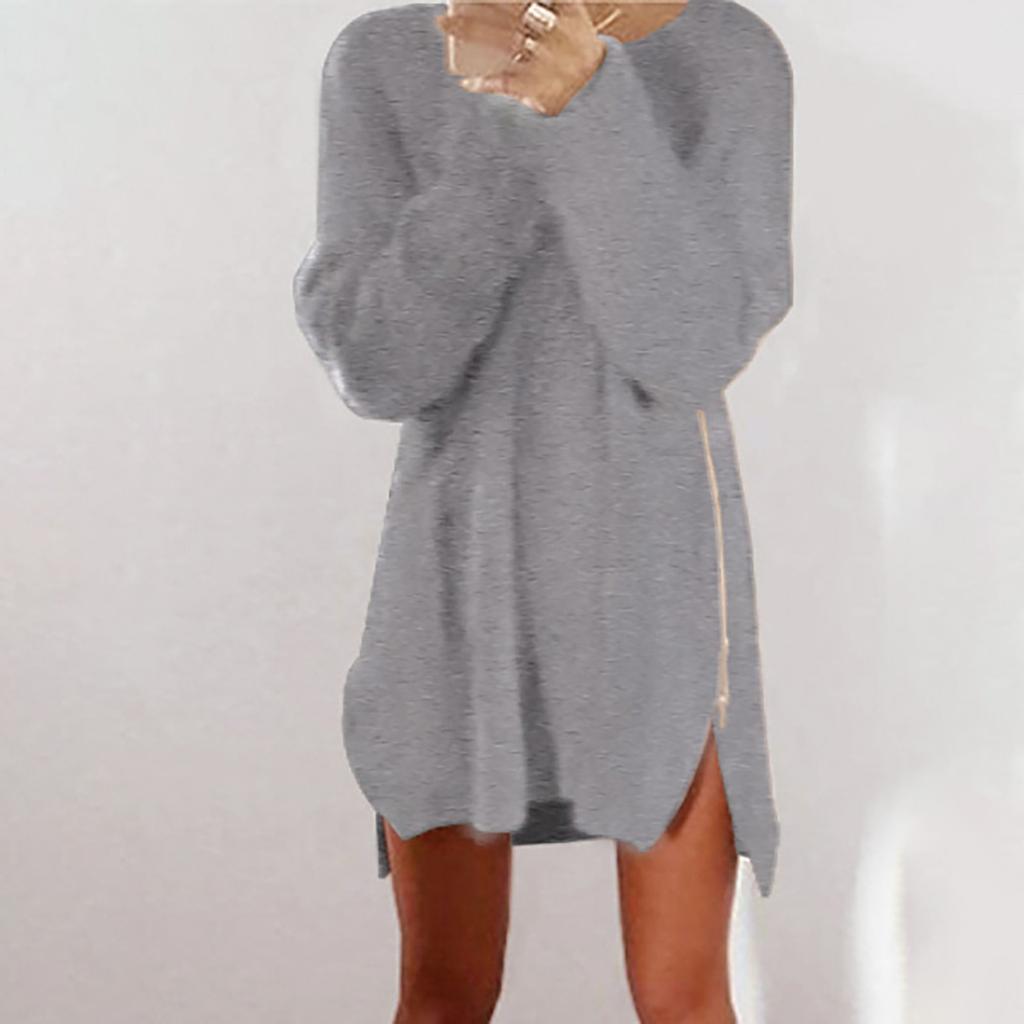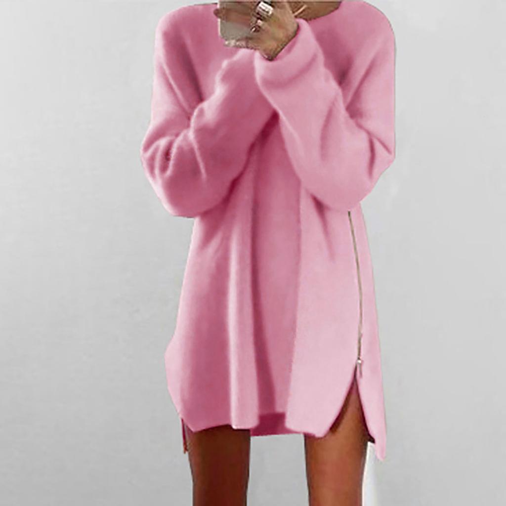 Женская мода повседневное однотонное свободное платье-свитер на молнии с длинным рукавом