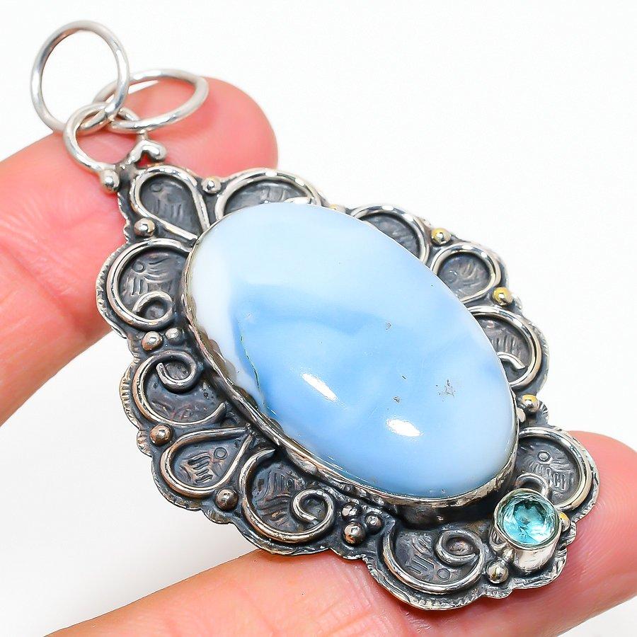 Подвеска ручной работы из серебра 925 пробы с опалом и топазом Owyhee, 2,84 дюйма