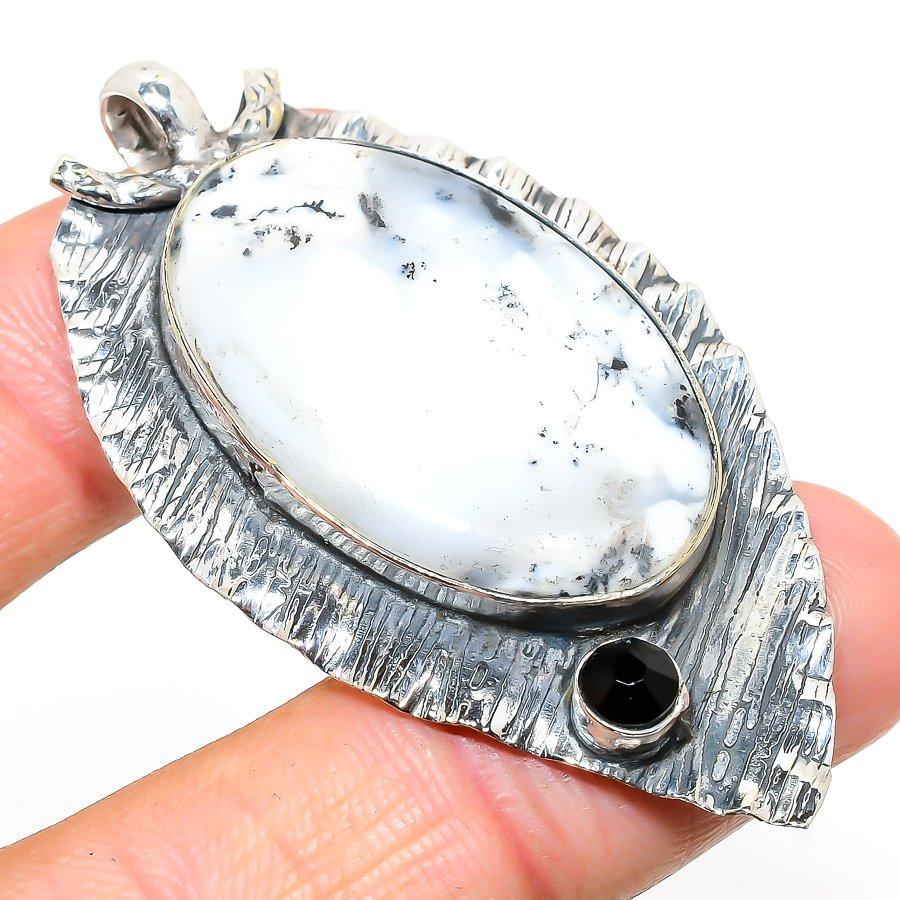 Дендритовый Опал, Шпинель Серебро 925 пробы Ювелирная Подвеска 2,36"