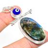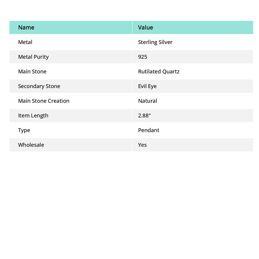 Black Rutile, Evil Eye 925 Sterling Silver Jewelry Pendant 2.88" l9u67