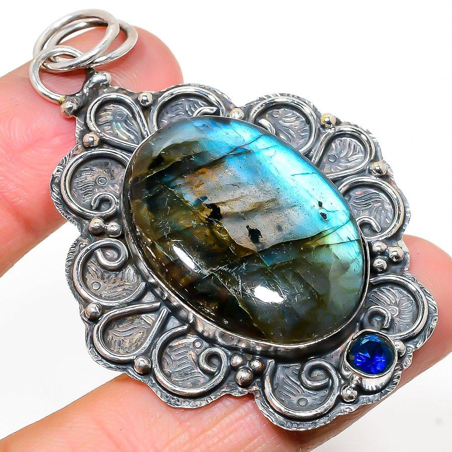 Лабрадорит, Топаз Ручная работа 925 Стерлинговое серебро Подарочная подвеска 2,60"