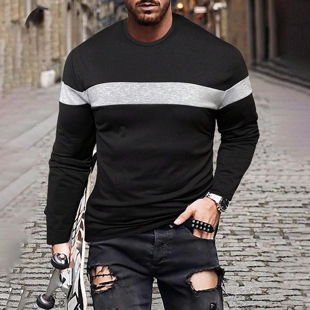 Модная осенняя мужская футболка с длинным рукавом, полосатая футболка с круглым вырезом и принтом, одежда 2024 года, модная уличная мужская спортивная футболка