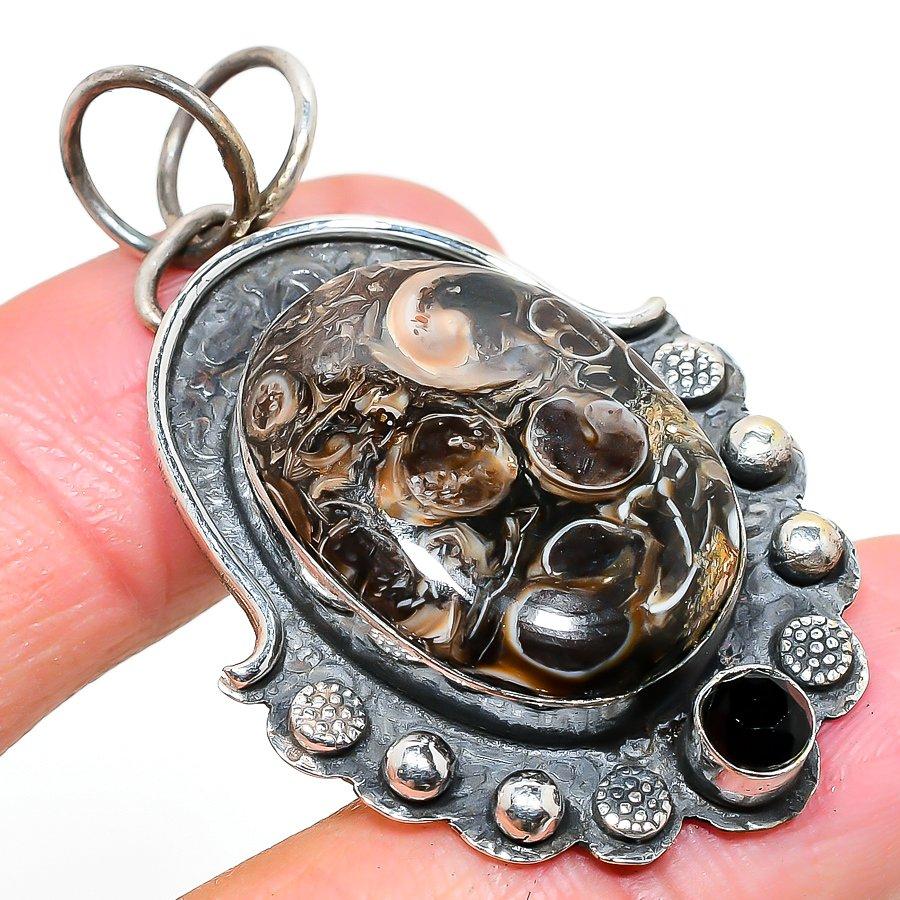 Ископаемая Туррителла, Шпинель 925 Стерлинговое Серебро Ювелирный Кулон 2.05" H5o89
