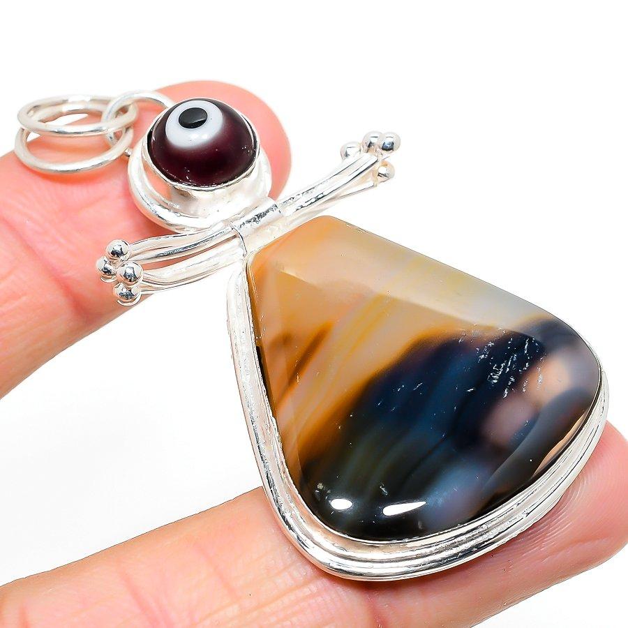 Ботсванский агат, Подвеска-амулет от сглаза из серебра 925 пробы 2,64"