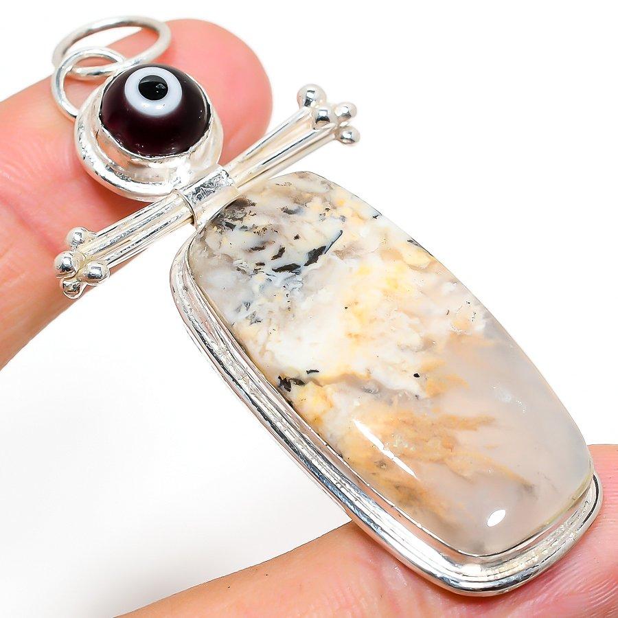 Russian Dendritic, Evil Eye 925 Sterling Silver Gift Pendant 2.96" c8B09
