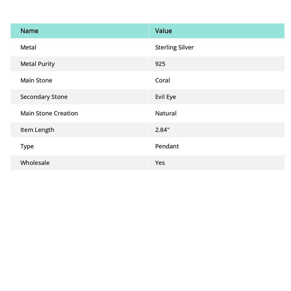 Fossil Coral, Evil Eye 925 Sterling Silver Jewelry Pendant 2.84" o1k46