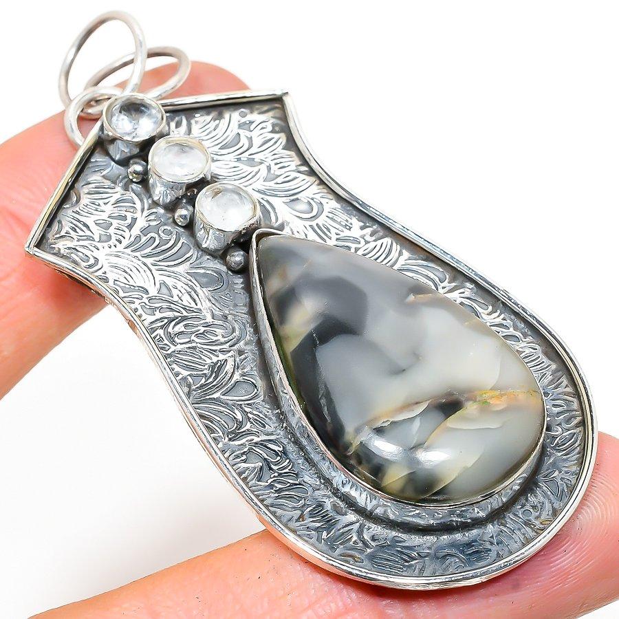 Ocean Fume Agate, Topaz 925 Sterling Silver Jewelry Pendant 2.88" e5d23