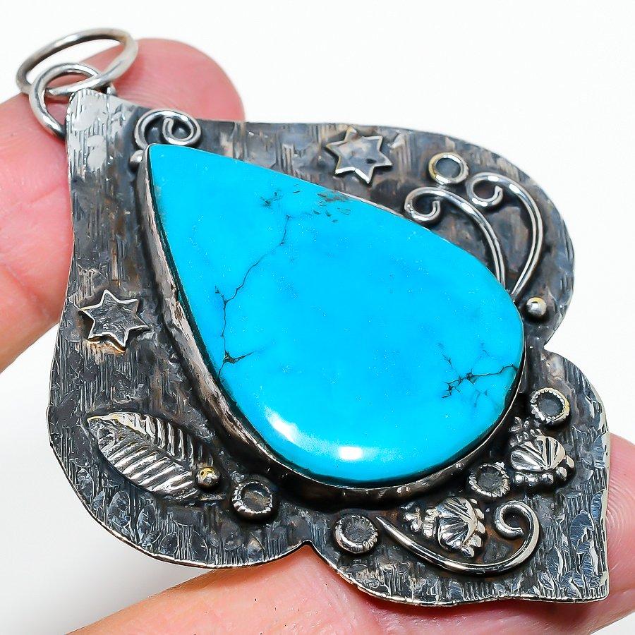 Тибетская бирюза ручной работы серебро 925 пробы подарочная подвеска 2,96"