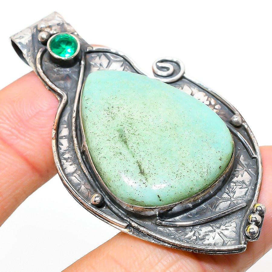 Хризопраз, Диопсид 925 Стерлинговое Серебро Ювелирная Подвеска 2,44"