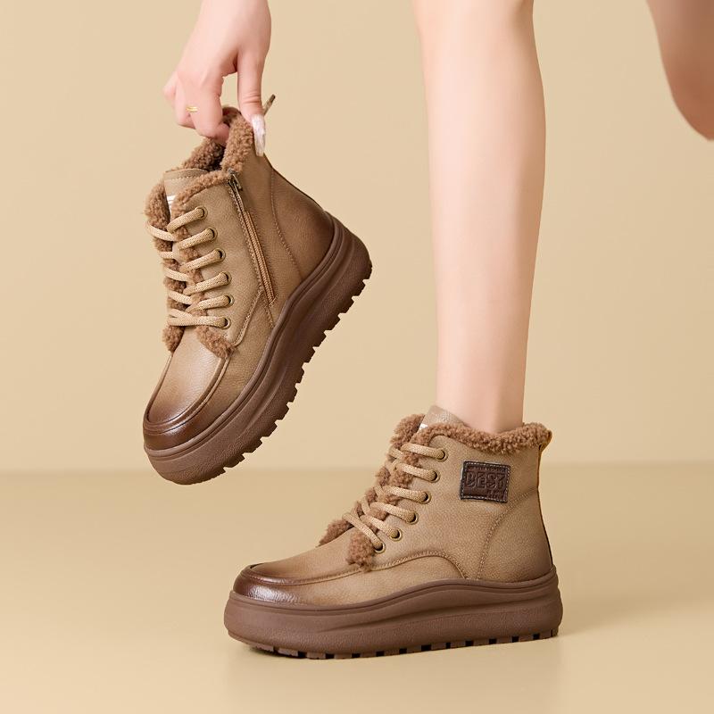 Зимние ботинки, увеличивающие рост, ретро-ботинки из хлопка, короткие ботинки с толстой подошвой
