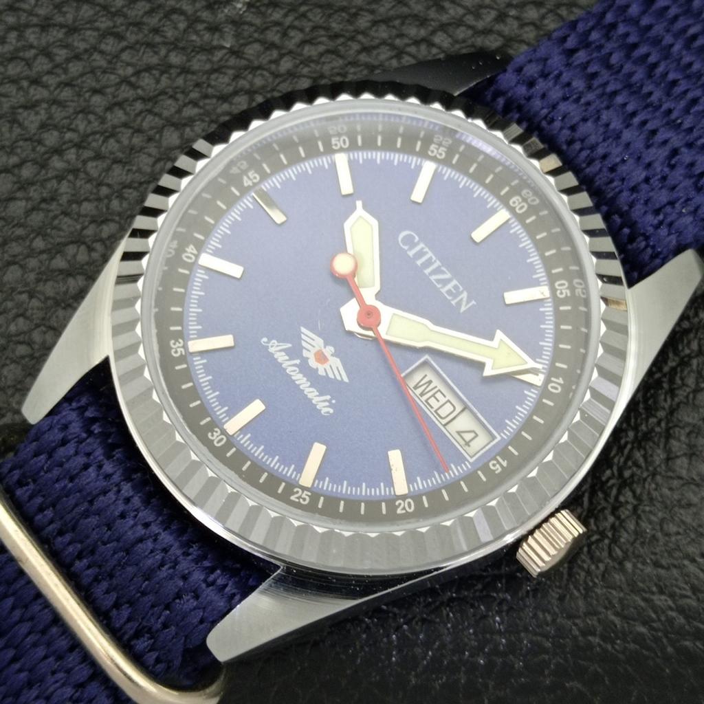 ВОССТАНОВЛЕННЫЕ МУЖСКИЕ ЧАСЫ CITIZEN AUTOMATIC 8200 JAPAN DAY&DATE СИНИЙ ЦИФЕРБЛАТ a432561-2 R112-a432561