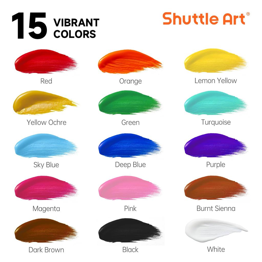 Акриловая краска Shuttle Art, 15 цветов, набор больших бутылок акриловой краски по 473 мл/16 унций каждая, насыщенная пигментом, высоковязкая краска для художников, начинающих и детей, для создания изделий из камня, холста, дерева, керамики
