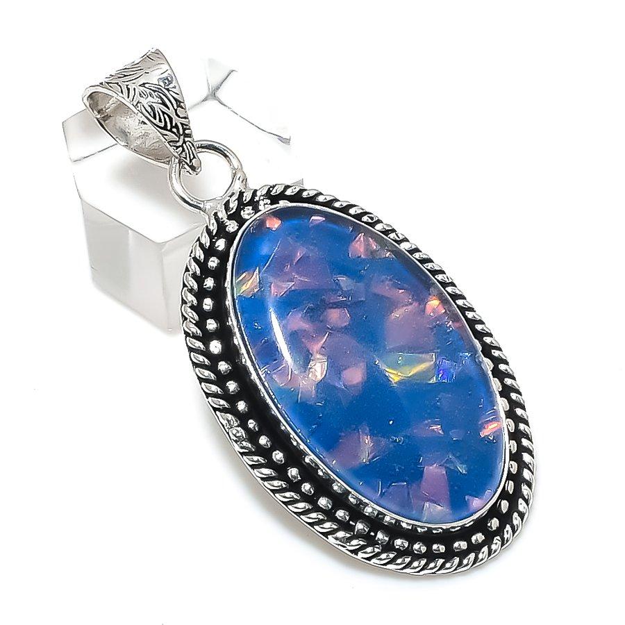 Синий Триплет Опал Этнический 925 Стерлинговое Серебро Ювелирный Подвеска 2,09"