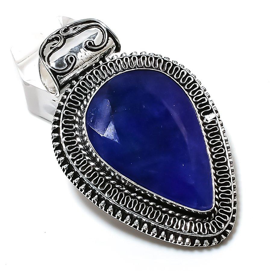 Сапфир(Смоделированный) Ювелирная подвеска из стерлингового серебра 925 пробы 2,36 дюйма