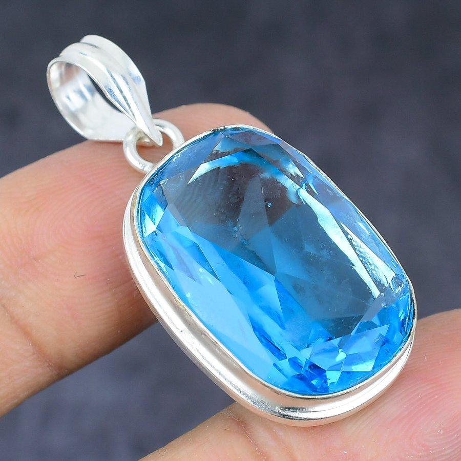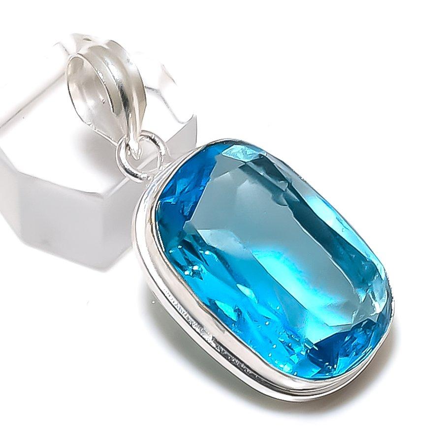 Подвеска из серебра 925 пробы с голубым топазом ручной работы в этническом стиле 1,62 дюйма