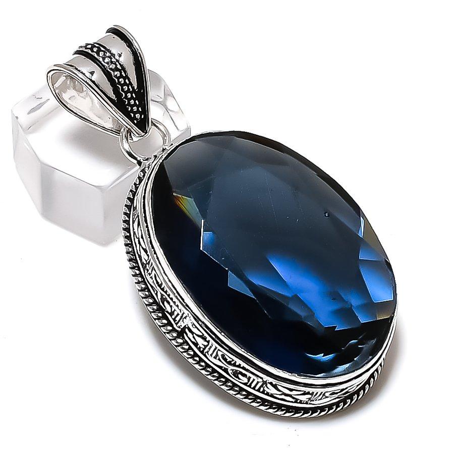 Подвеска из серебра 925 пробы с голубым топазом ручной работы в этническом стиле 2,17 дюйма