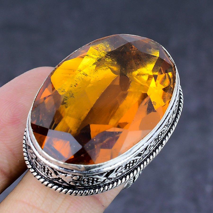Кольцо из серебра 925 пробы с медовым топазом ручной работы, этническое, размер 8, k4m85