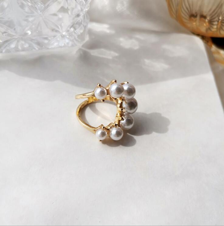 Модные большие геометрические жемчужные кольца для женщин 2021 года, новые ювелирные изделия, индивидуальное заявление, открытое кольцо, регулируемая бижутерия ARI