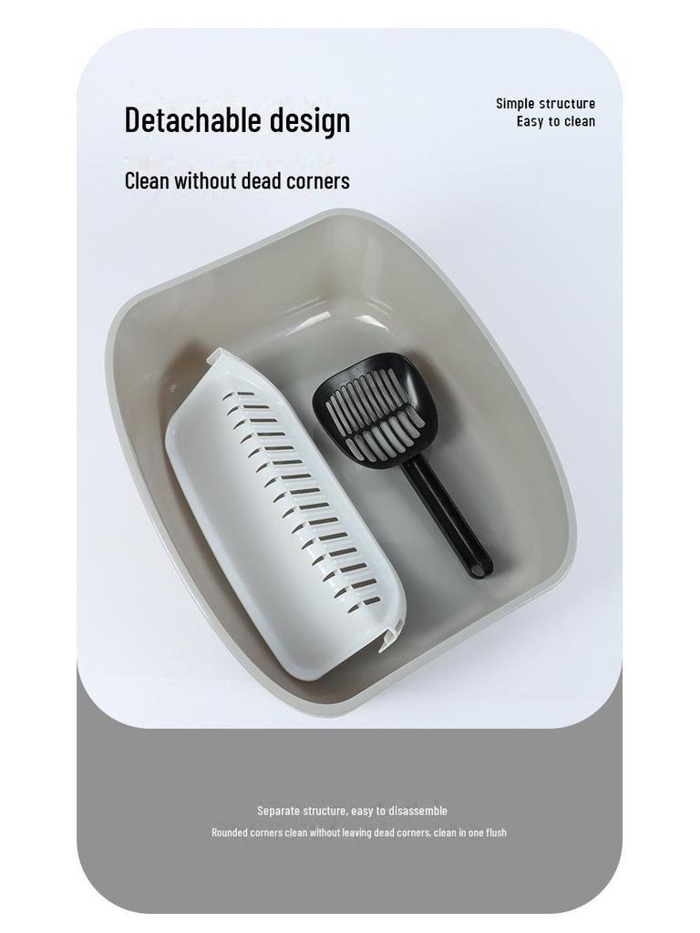 Съемный большой кошачий туалет с лопаткой — конструкция, препятствующая образованию мусора, для легкой уборки