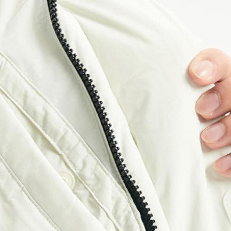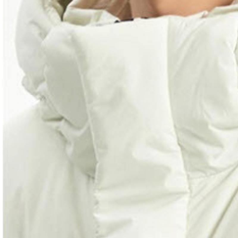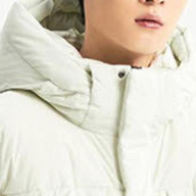 Product material: Outer fabric - 100% nylon/ pocket feel, charging bag - 100% polyester/ filling - body - goose fluff (80% fluff - 20% feather) /filling - hood brim, pocket flap, etc. - 100% polyester