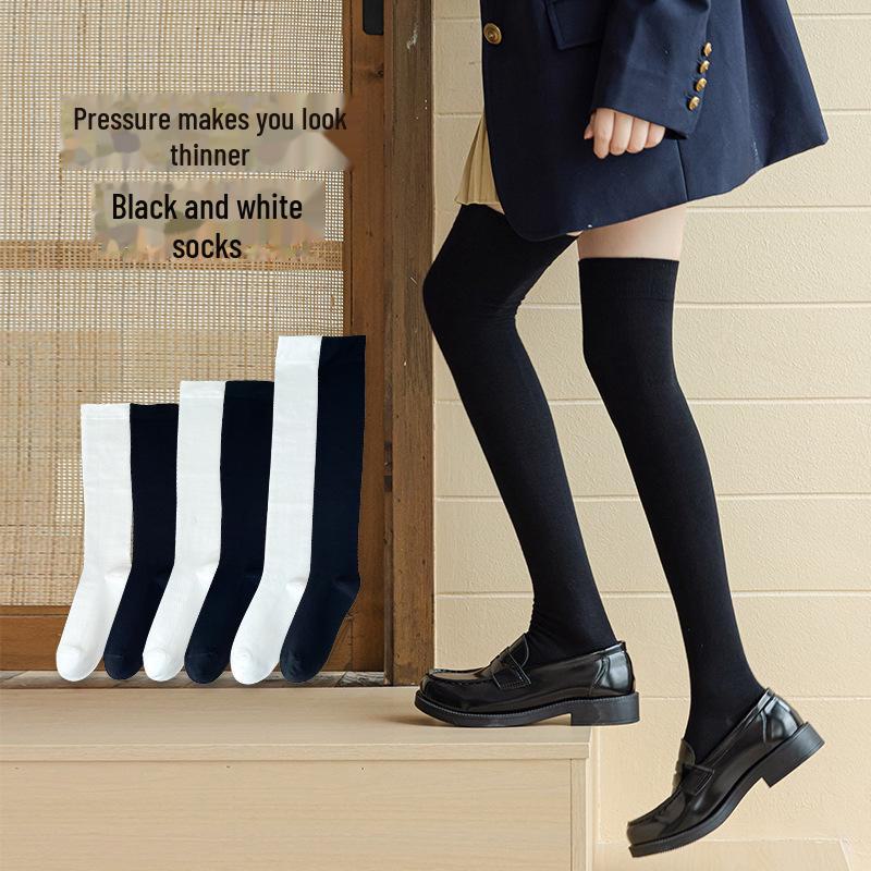 Компрессионные гольфы выше колена в японском стиле черного и белого цвета для прыжков и фитнеса
