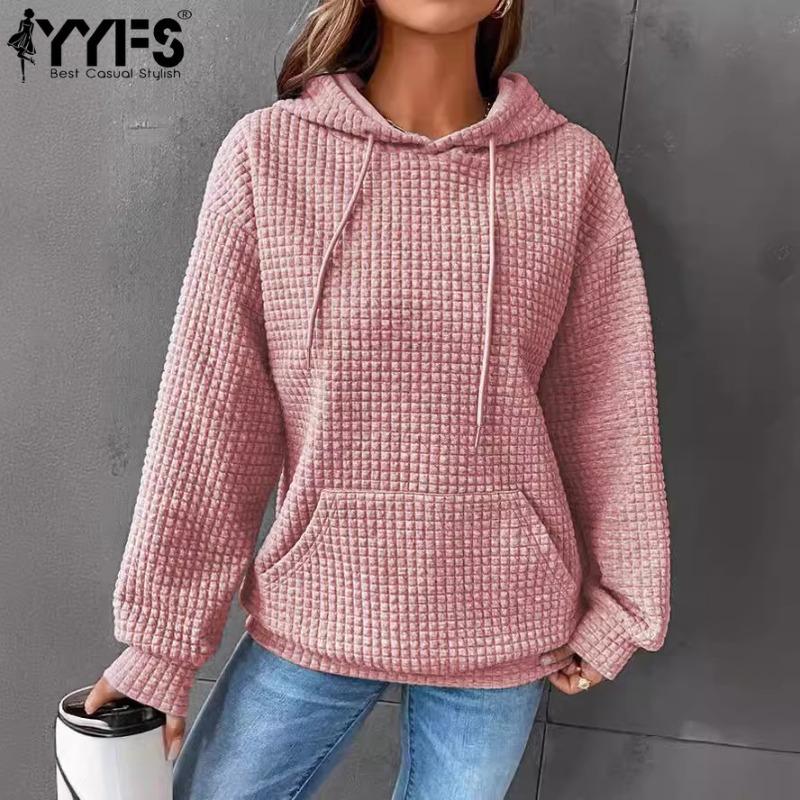 YYFS Женские модные повседневные однотонные худи и свитшоты с капюшоном и длинными рукавами с принтом