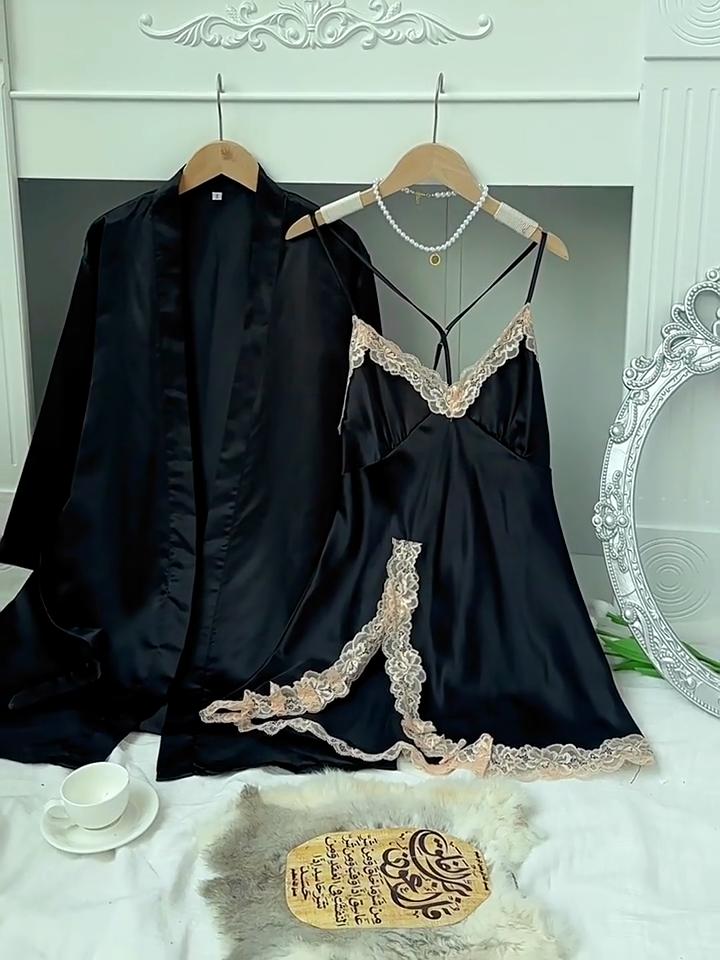 Женский пижамный комплект в европейском и американском стиле, платье-камисоль и халат, комплект из 2 предметов, одежда для сна, сексуальная кружевная домашняя одежда — купить товар онлайн с бесплатной доставкой по всему миру!