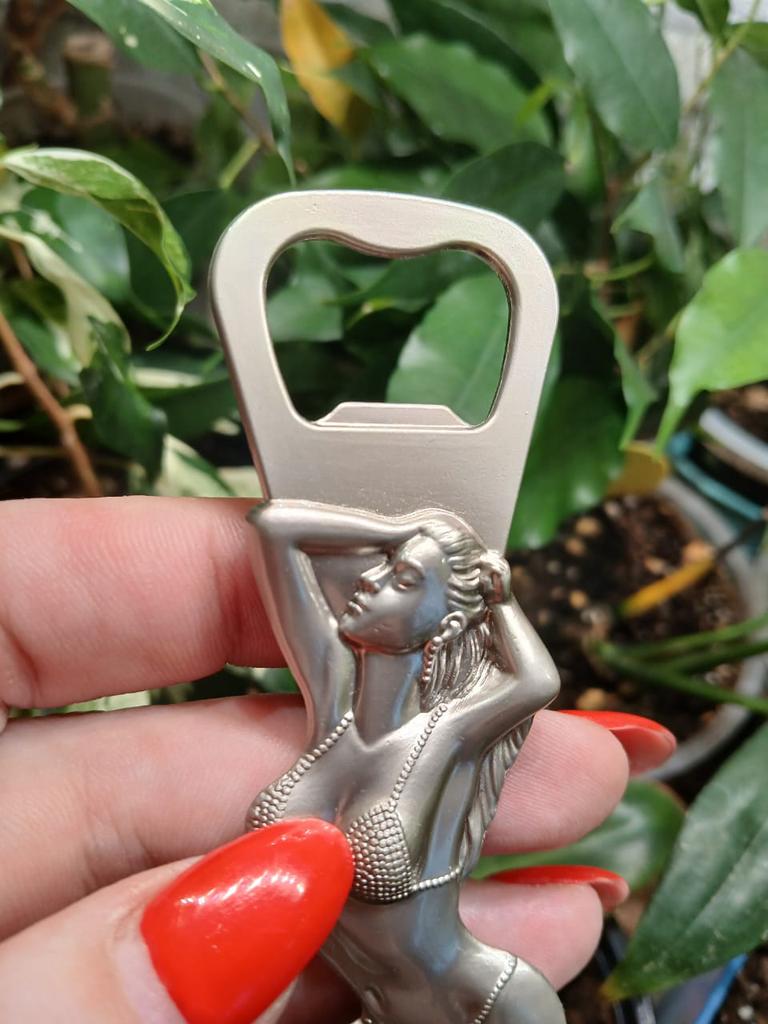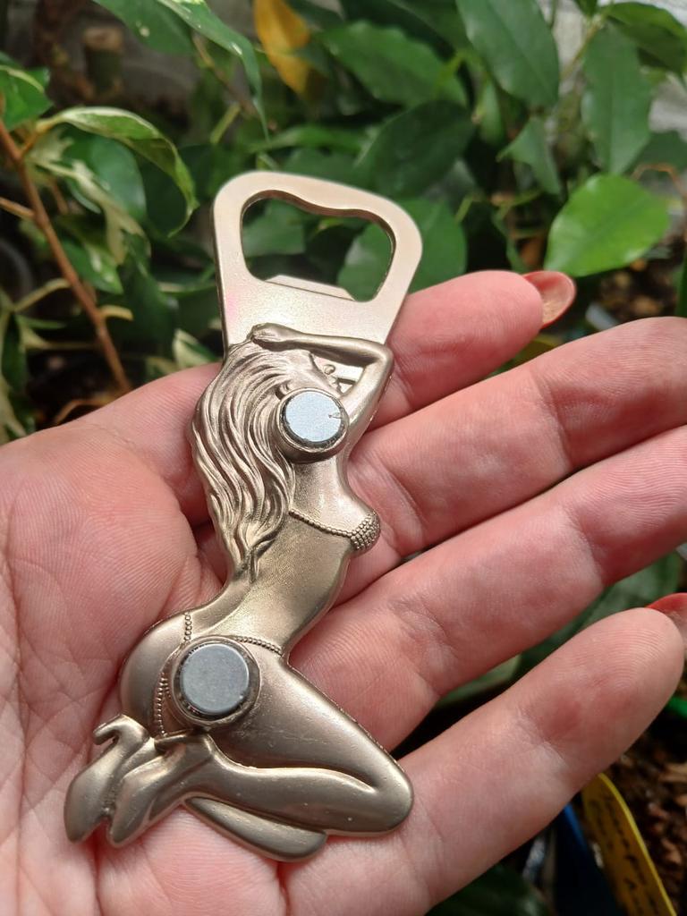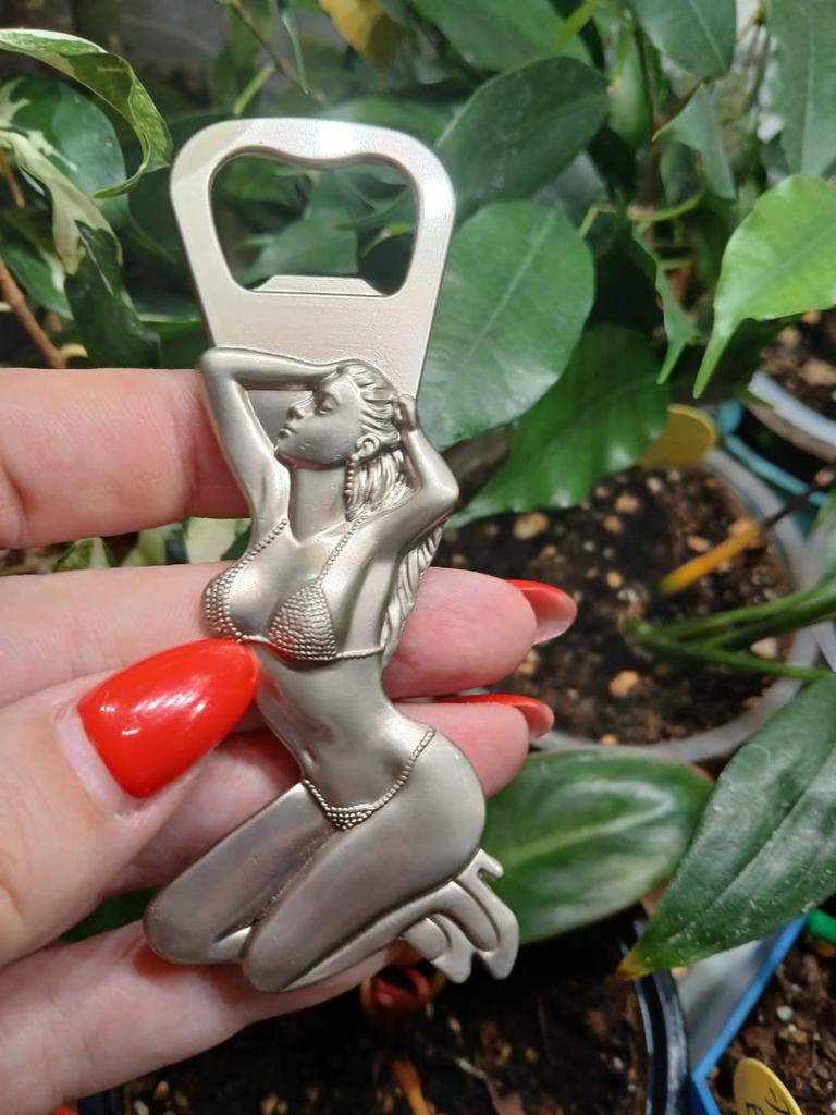 МАГНИТНАЯ ФИГУРНАЯ ОТКРЫВАЛКА ДЛЯ БУТЫЛОК "ДЕВУШКА В БИКИНИ" 👙👯♀️ Толстый, твёрдый металл . Высота 10 см. ЗДОРОВО МАГНИТИТСЯ К МЕТАЛЛИЧЕСКИМ ПРЕДМЕТАМ (столик, холодильник...) так как с другой стороны открывашки есть два мощных магнита. Учень удобно держать её прямо на двери холодильника, чтобы была всегда под рукой, если выпить бутылочного прохладительного напитка. Выполнена на ⭐⭐⭐⭐⭐ Вообще крутая 💯 Рекомендую 👍