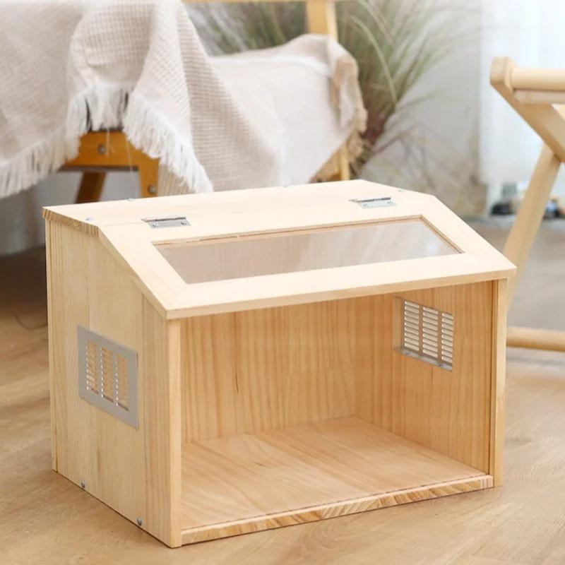 Деревянная и акриловая клетка для хомяков, прозрачная, видимая клетка для кормления домашних животных, собранная своими руками, ящик для акваскейпа, ползающий ящик для кормления домашних животных