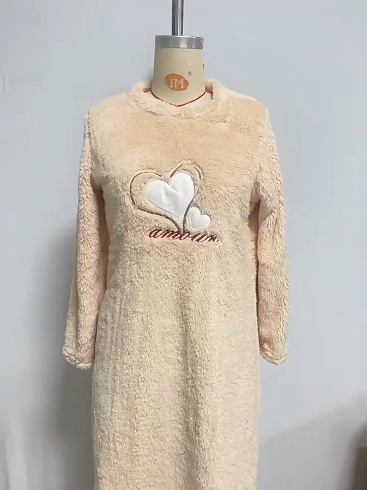 Женская осенне-зимняя фланелевая домашняя одежда, утолщенная ночная рубашка с длинными рукавами, симпатичный пуловер средней длины с сердечком, домашняя одежда