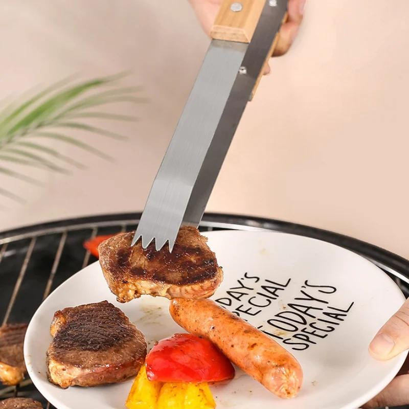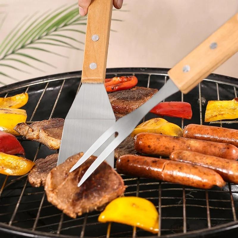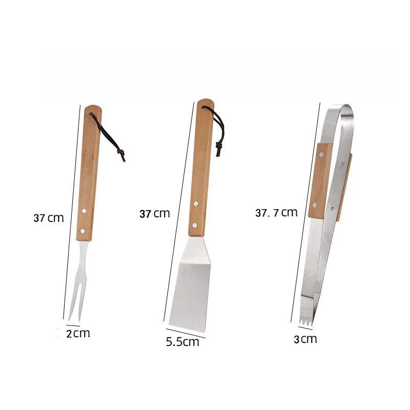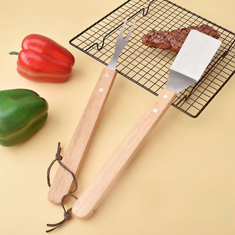 Нержавеющая сталь барбекю принадлежности барбекю набор инструментов для кемпинга на открытом воздухе деревянная ручка вилка лопата зажим комбинированный набор барбекю принадлежности