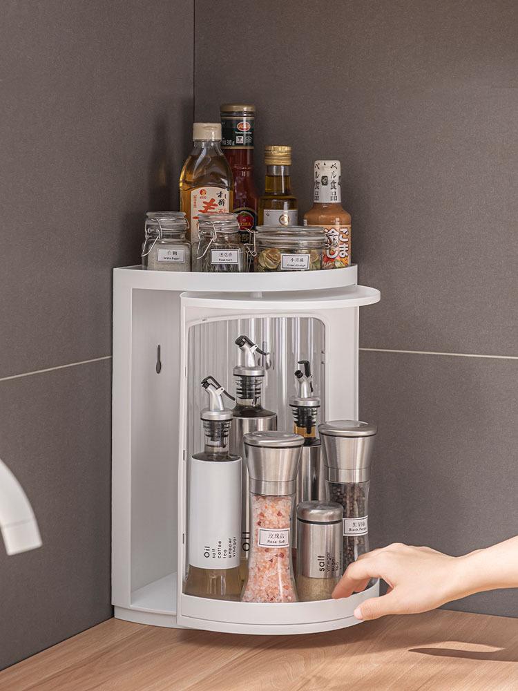 Кухонная стойка для приправ, угловой шкаф, столешница, настенная полка, вращающийся треугольник, ванная комната, органайзер для хранения косметики для дома