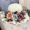 Сплетенная вручную соломенная шляпа с цветком розы, женская летняя, маленькая, свежая, пасторальная, кружевная, с большим карнизом, пляжная шляпа