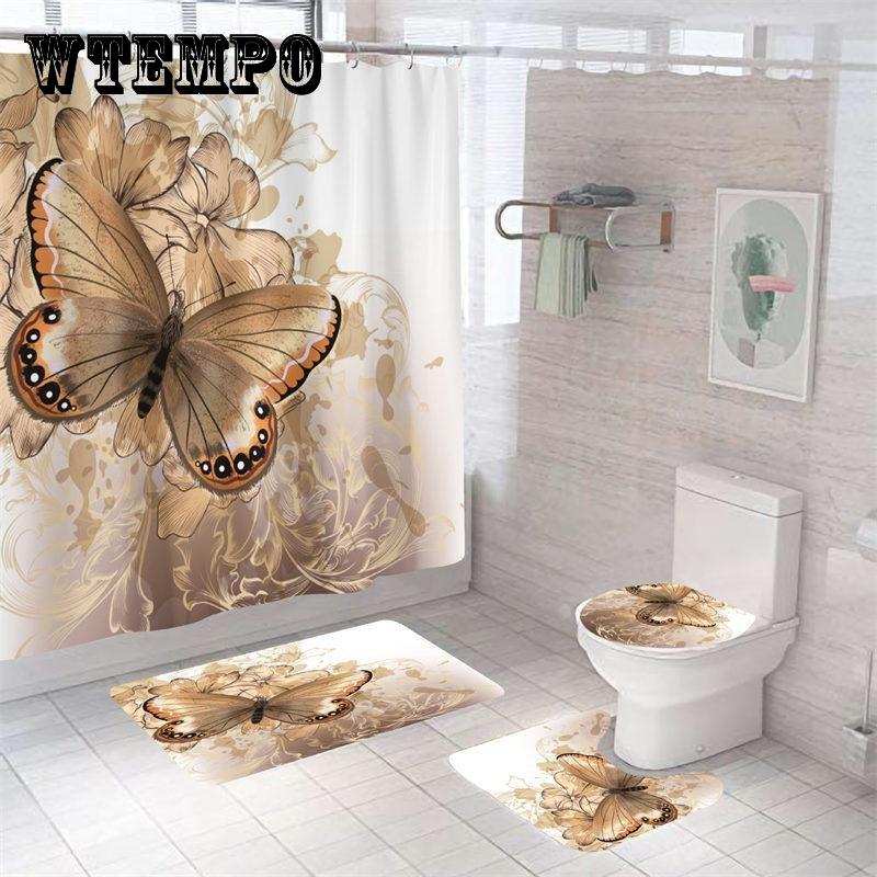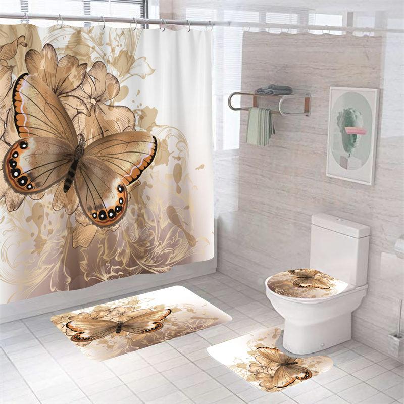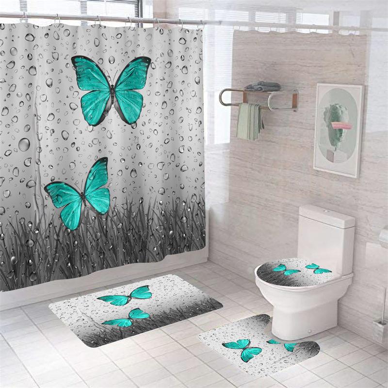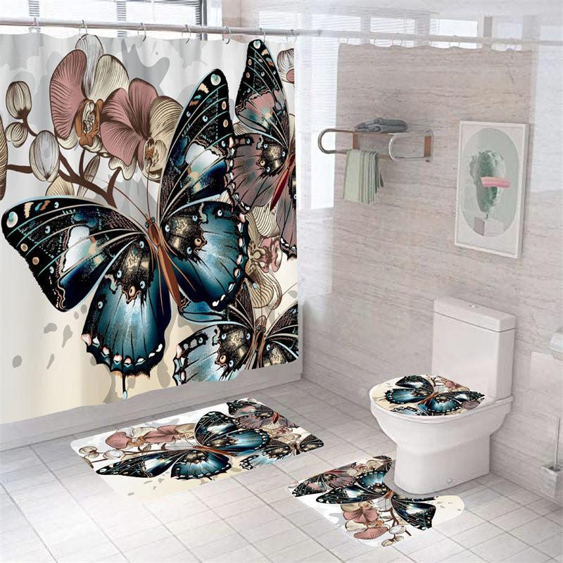 4 шт., водонепроницаемая и моющаяся занавеска для душа с бабочкой и набор ковриков для ванной, занавеска для душа в ванной комнате