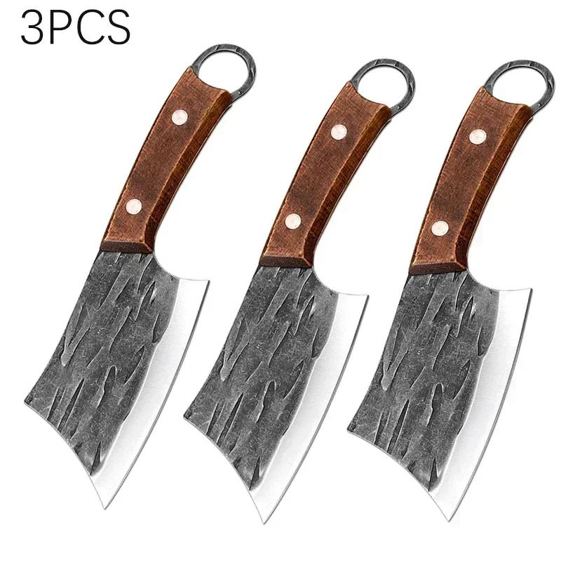 Кухонные ножи шеф-повара, кованый ручной работы, разделочный нож, мясницкий нож из нержавеющей стали, деревянная ручка, кухонные принадлежности