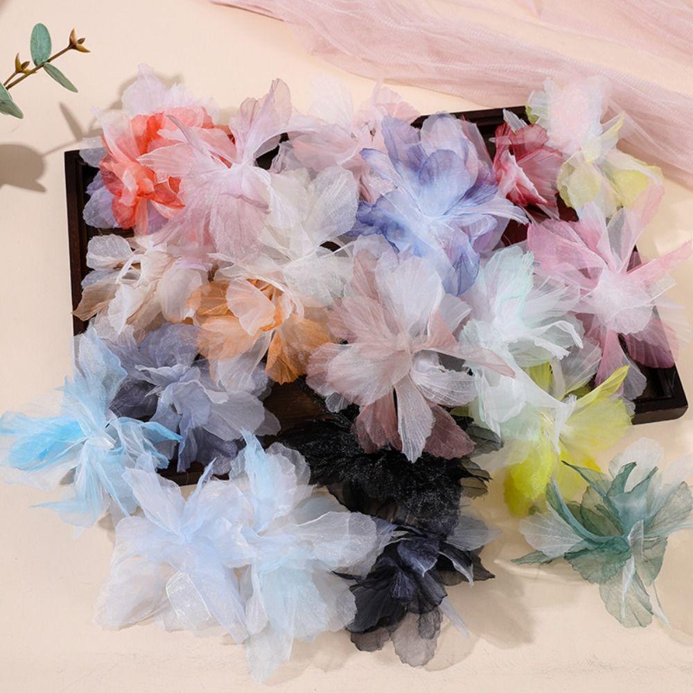 10 шт. 3D-цветочные аппликации из органзы и кружева для свадебного платья, градиентная кружевная отделка, швейные аксессуары, декоративные нашивки
