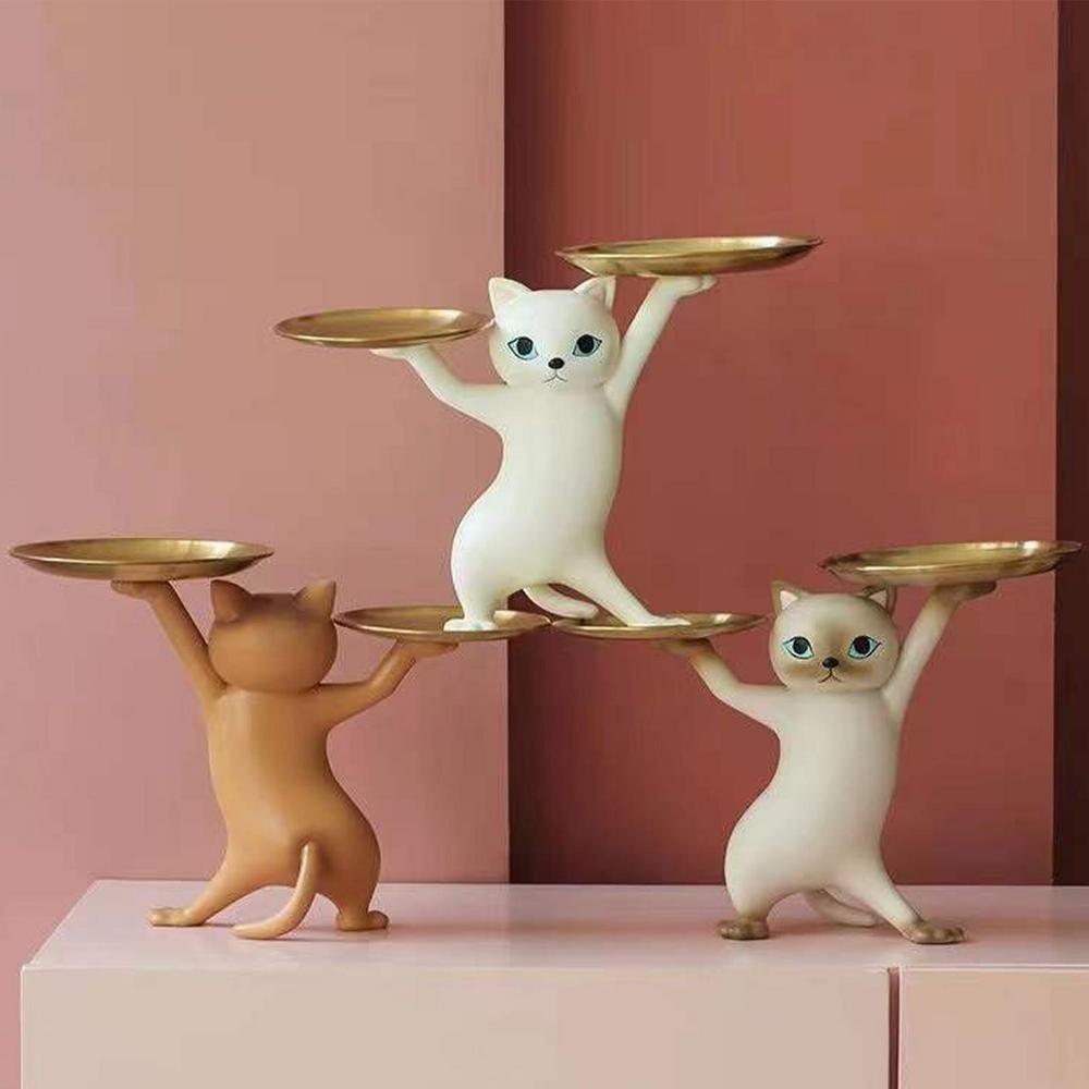 Статуэтка из скандинавской смолы для кошек, симпатичный поднос для кошек, держатель для ключей на крыльце, контейнер для хранения закусок и конфет, украшение для рабочего стола