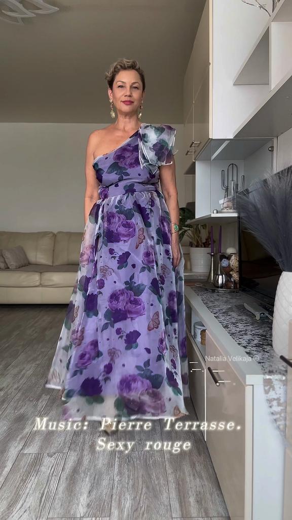Эффектное платье на одно плечо ✔️На выбор два цвета , размеры S-2XL. Мои параметры : 167, 98-85-100. На мне размер 2XL. ✔️Фасон: Верхняя часть держится на одном плече, украшенном лепестками Под лепестками небольшой рукав Есть выточка Второе плечо открыто Вырез по косой Со стороны открытого плеча сбоку молния На талии сборки Снизу вверх идёт довольно откровенный разрез, почти до талии) Юбка широкая ✔️Ткань: Верхний слой из органзы. Ткань довольно жёсткая, прозрачная Второй слой из мягкой синтетической ткани, однотонной Подкладка и основная ткань сшиты между собой ✔️Впечатления: Чтобы носить это платье, вам понадобится толика смелости, потому что вырез довольно смелый, и бюстгальтер, скорее всего, надеть не получится Разрез тоже совсем не пикантный, больше откровенный. При ходьбе ноги не особо оголяются, но на ветру, полагаю, будет иначе) Ещё вам понадобится грудь) мне не хватило) в груди осталось место, возможно, если бы взяла на размер меньше, село бы лучше. В общем, смелое платье, чего уж там). ✔️Пошив аккуратный. 📐Замеры : ОГ подмышками 100 ОТ 84 ОБ 140(примерно) Длина 140