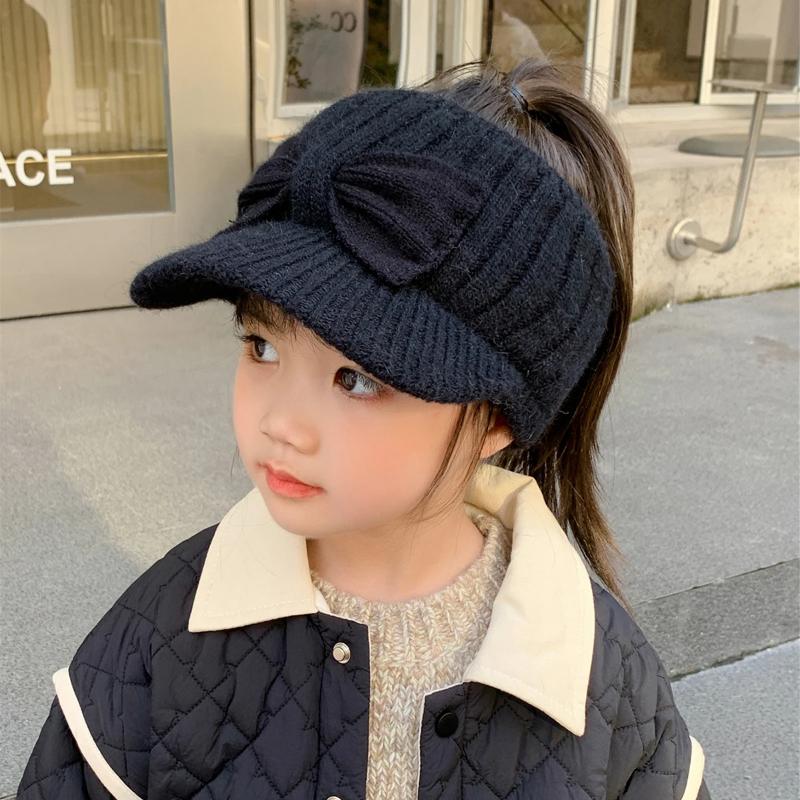 3-10 лет Детская вязаная шапка бейсболка для девочки милый бант хвост коса осень и зима теплый детский пустой верх свитер