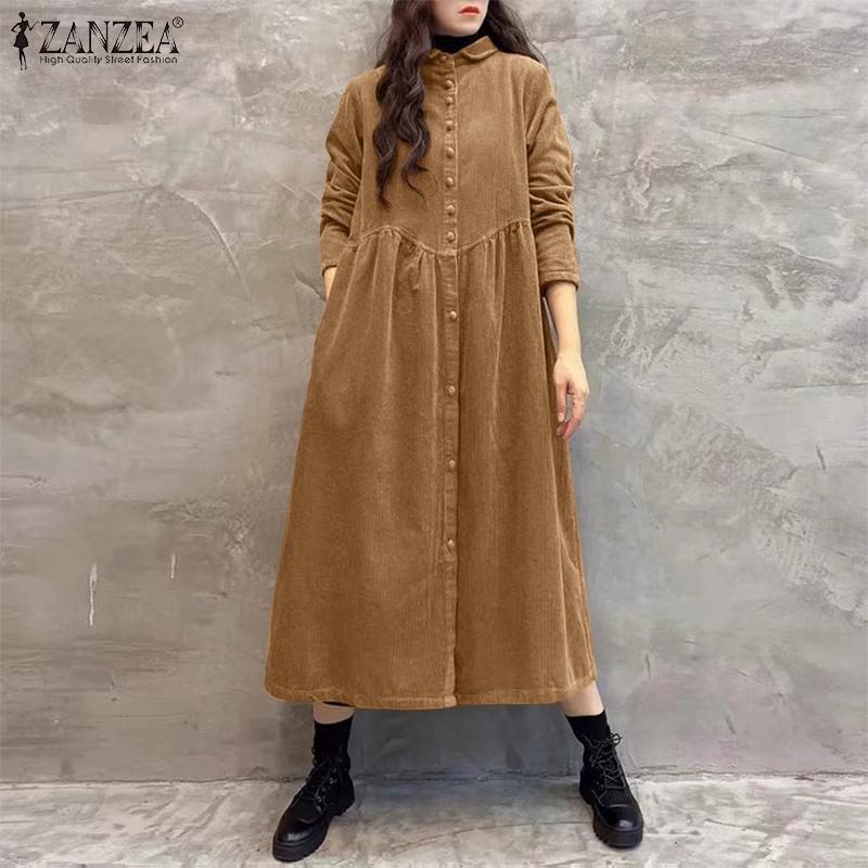 ZANZEA Женское повседневное платье в стиле ретро с отложным воротником и длинными рукавами — купить товар онлайн с бесплатной доставкой по всему миру!