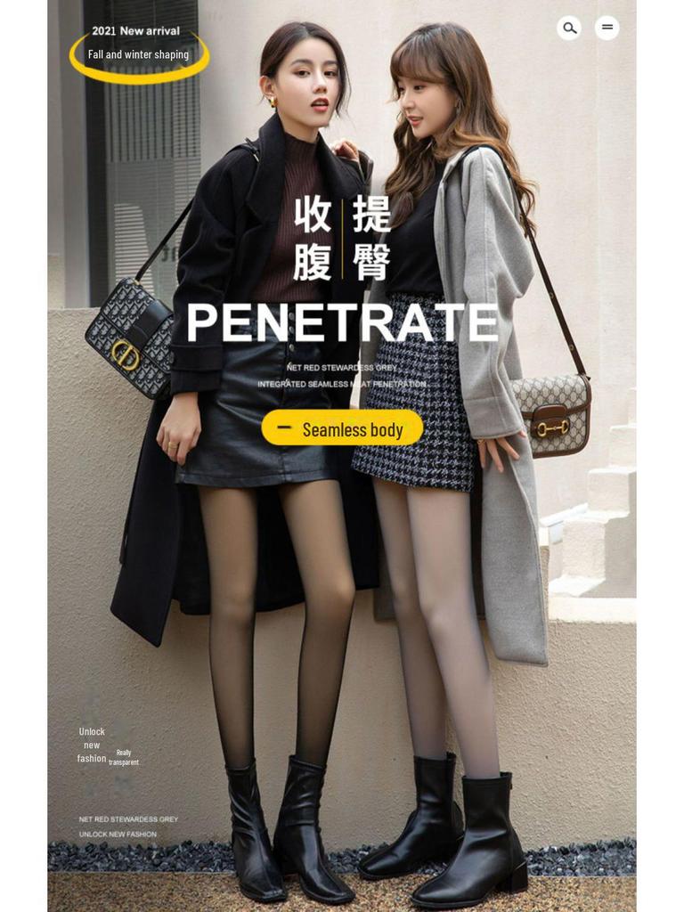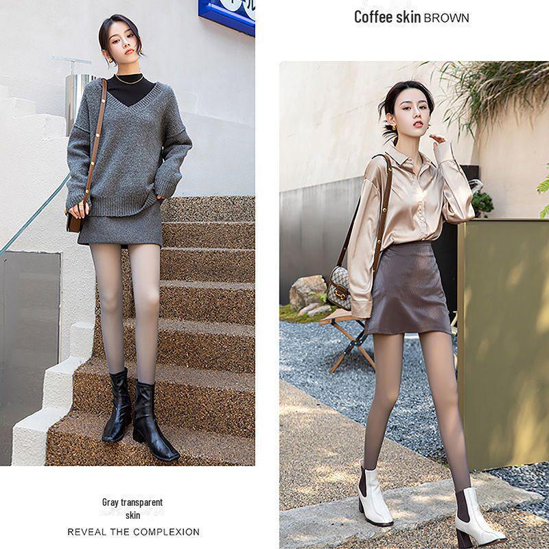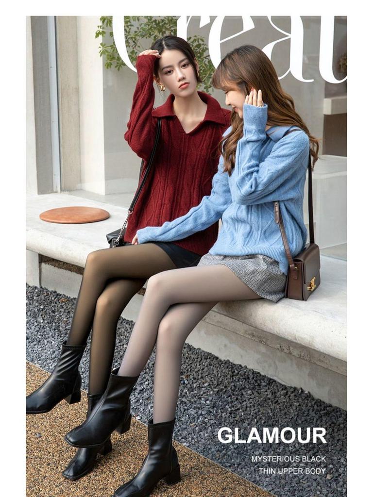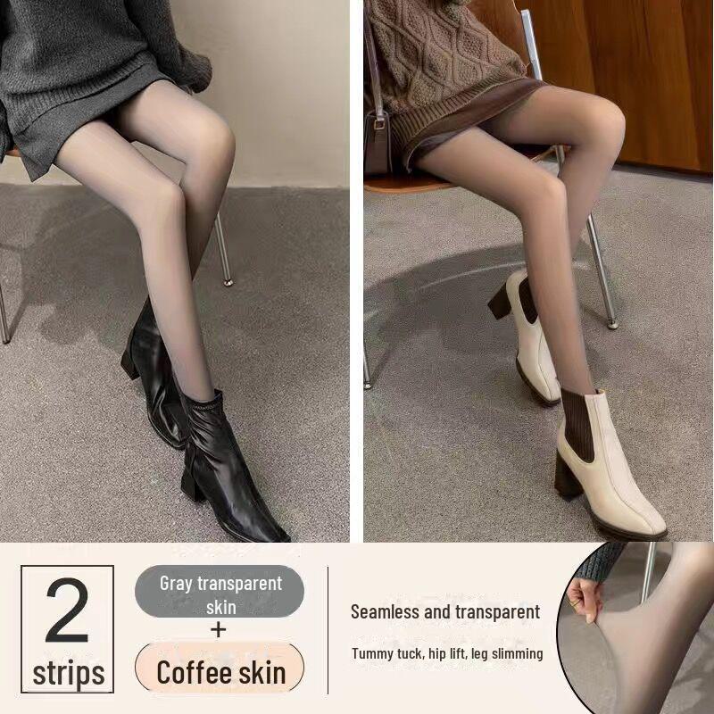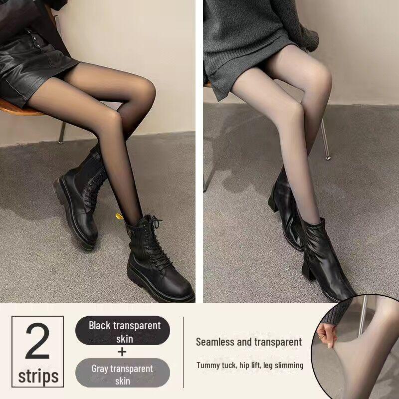 2 пары серых искусственных прозрачных колготок Stewardess - Plus Velvet, прозрачные для кожи, на все времена года