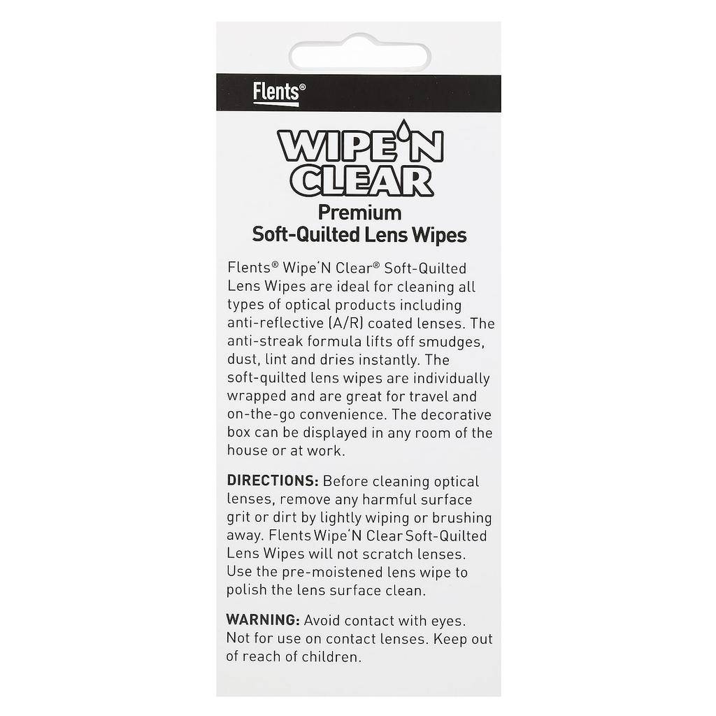 Flents Wipe 'N Clear, мягкая стеганая салфетка для протирки линз премиум-класса, в индивидуальной упаковке, 20 листов