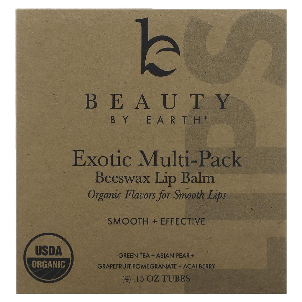 Beauty By Earth, органический бальзам для губ с пчелиным воском, экзотическая мультиупаковка, 4 тюбика по 0,15 унции каждый