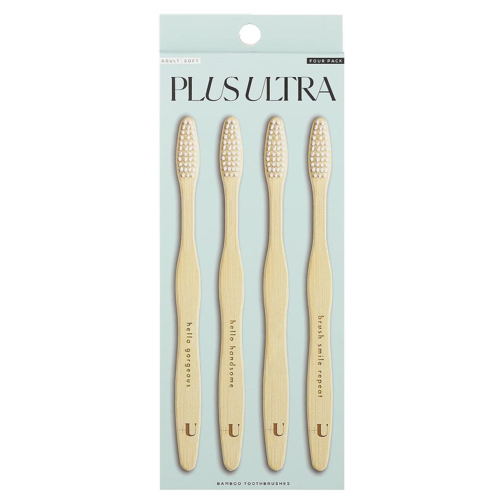 Plus Ultra Бамбуковая зубная щетка, Взрослая, Мягкая, 4 шт.