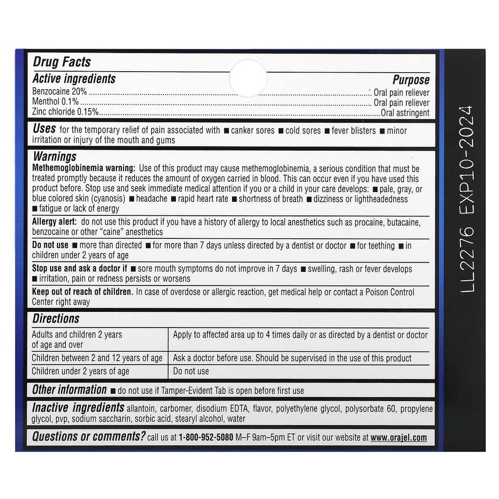 Меры предосторожности: Предупреждение об аллергии: Не используйте этот продукт, если у вас когда-либо была аллергическая реакция на местные анестетики, такие как прокаин, бутакаин, бензокаин или другие анестетические ингредиенты типа «каина».. Противопоказания Не применять больше, чем указано в инструкции.. Не используйте дольше 7 дней, если иное не предписано стоматологом или врачом.. Если боль в полости рта не проходит в течение 7 дней, появляется отек, сыпь или жар, или раздражение, боль или покраснение сохраняются или усиливаются, прекратите использование и обратитесь к врачу.. Сделай это. Храните в недоступном для детей месте. В случае передозировки или аллергической реакции немедленно обратитесь за медицинской помощью или позвоните в центр неотложной помощи.
