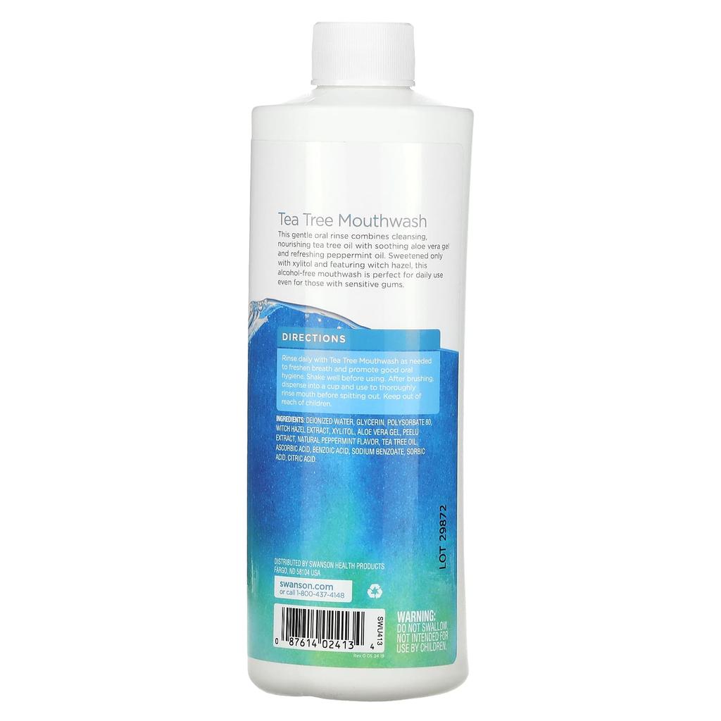 Swanson, Ополаскиватель для полости рта с экстрактом чайного дерева, перечная мята, 16 жидких унций (473 мл)