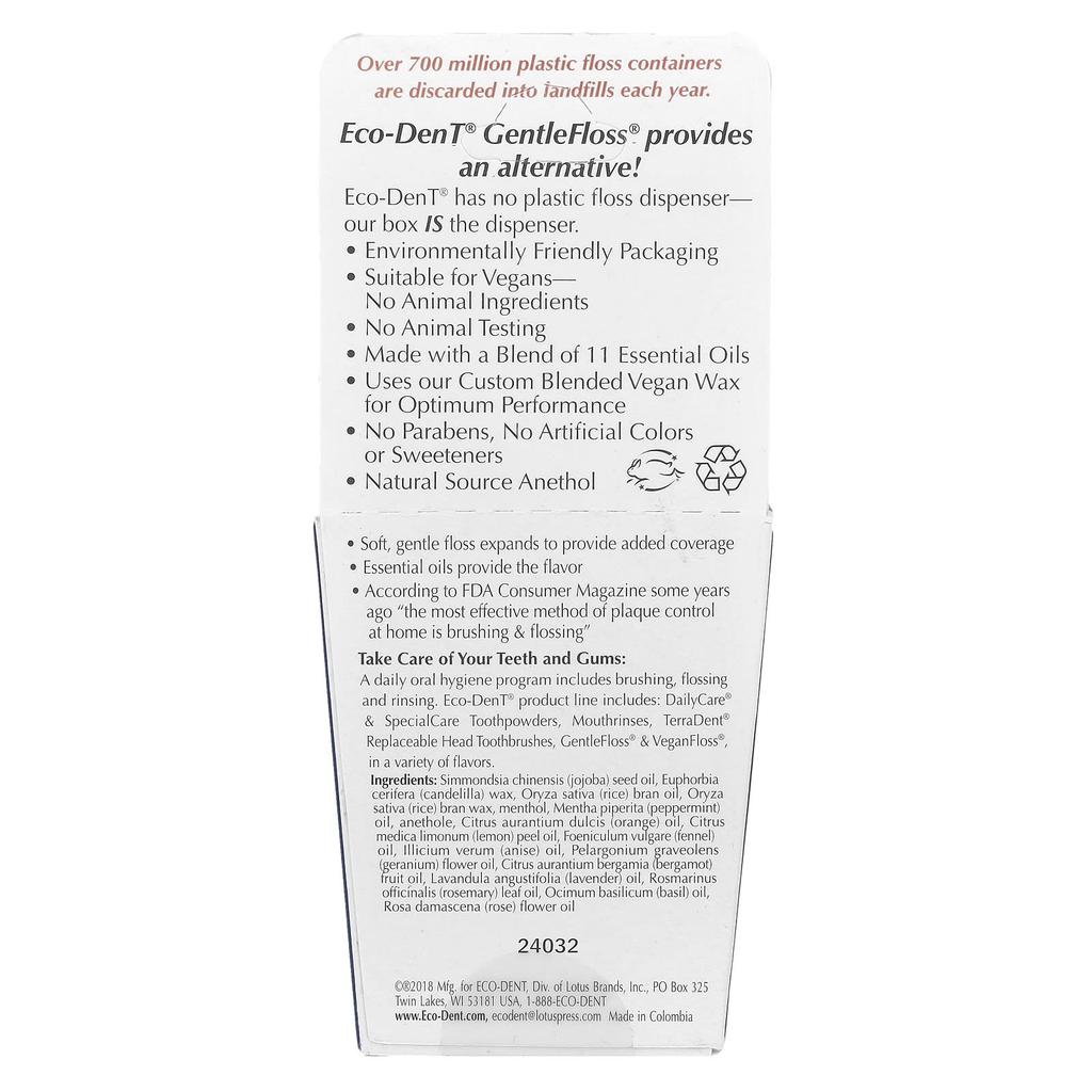 Eco-Dent GentleFloss®, со вкусом мяты, 91,44 м (100 ярдов)