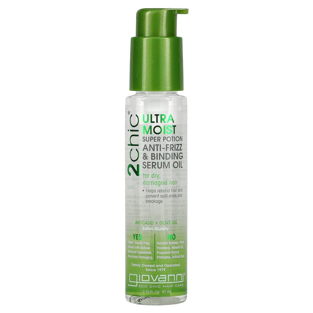 Giovanni, 2chic, Ultra-Moist Super Potion, сыворотка-масло против пузырьков и связывания, авокадо + оливковое масло, 81 мл (2,75 жидких унций)